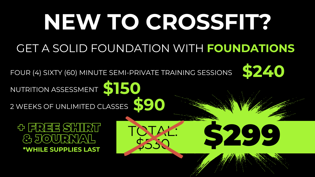 After you finish your Foundations classes, you graduate to our regular CrossFit classes and get the full CrossFit experience!